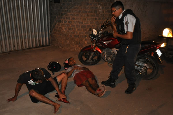 Uma testemunha viu quando o garupeiro se levantou e arremessou uma arma de fogo para o interior da chácara número 113 localizada naquela avenida e avisou à polícia. Feridos, Antonio Francinildo Marques Farias, de 23, o “Buiu”, e Lúcio Antonio da Silva, de 26 anos, o “Nin”, permaneceram no local. O primeiro mora na Rua Cônego Climério, 102 (Pio XII) e responde inquérito por tráfico de drogas e o outro reside na Rua Francisco Alves Neto, 66 (Aeroporto).