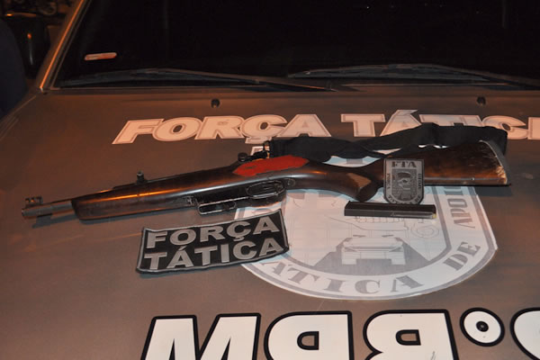 Quando os Soldados Monteiro, Ivan, Cassiano, Hildo, Brandão, Weverton, Sílvio, Auriberk, Adriano e Cristiano chegaram ao local quiseram saber sobre a arma e a dupla disse que não sabia nada sobre o assunto. Com autorização do dono, PMs adentraram a chácara e encontraram um rifle calibre 22 com 3 cartuchos intactos em um carregador acoplado ao mesmo. Os dois foram sorridos para o HRC onde estão sob escolta da polícia, enquanto a moto foi levada para a delegacia.