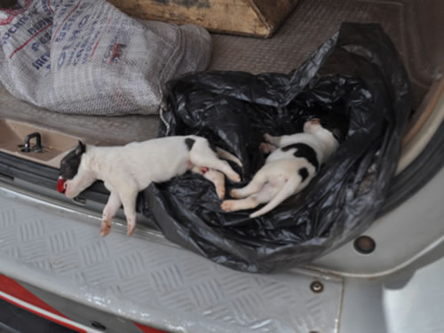 cachorros foram mortos após serem arremessados, pelos menos três vezes,
