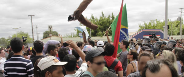 Mobilizados, por meio da internet, centenas de manifestantes se