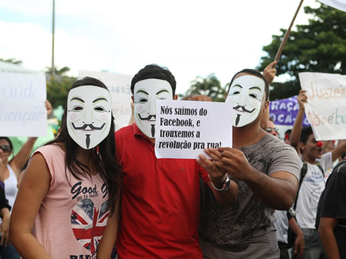 mascarados em protestos no Ceará. (Foto: Normando Sóracles/Agência